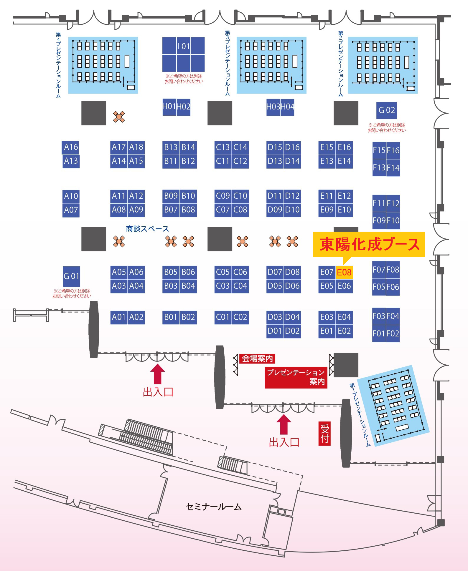 【当社ブース番号】E08 ⇒ 会場フロアマップ