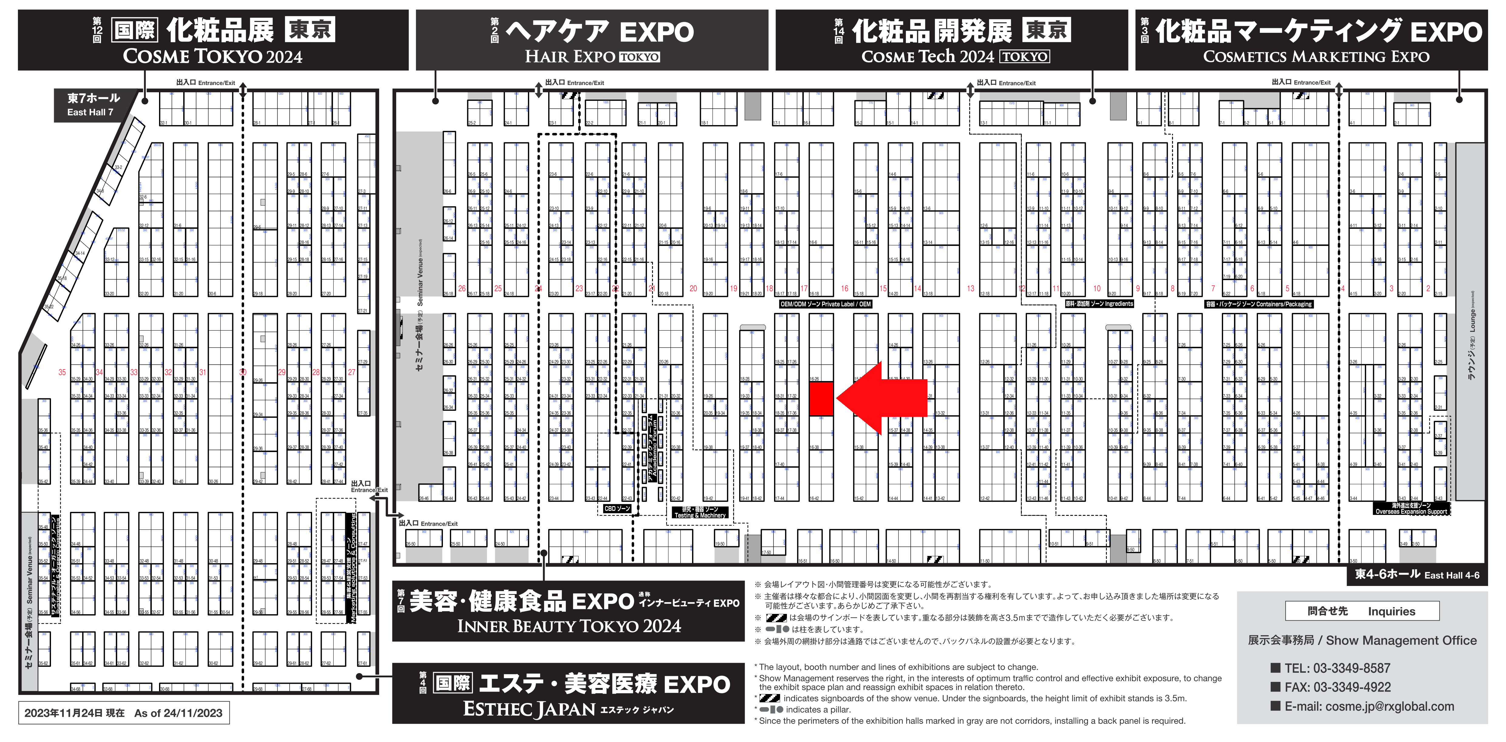| 会 期 2024年1月17日(水)~19日(金) 会 場 東京ビッグサイト 開場時間 10:00~18:00(最終日のみ17:00終了) 当社ブース番号 16-34 ※会場案内図で確認 |